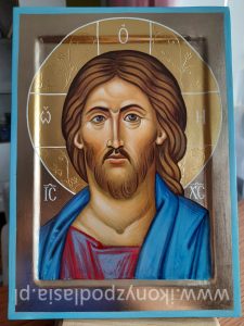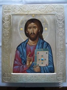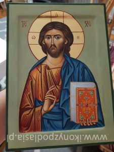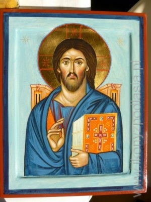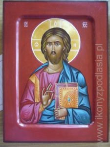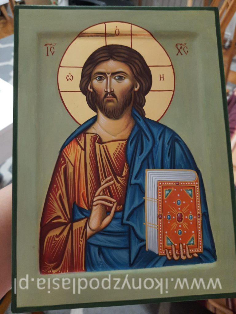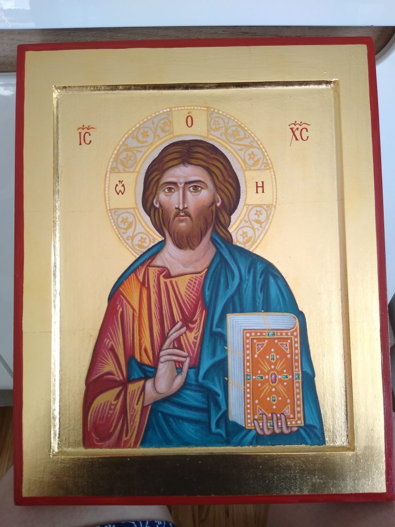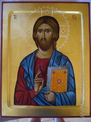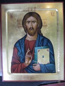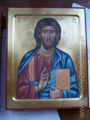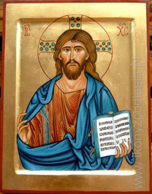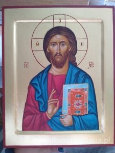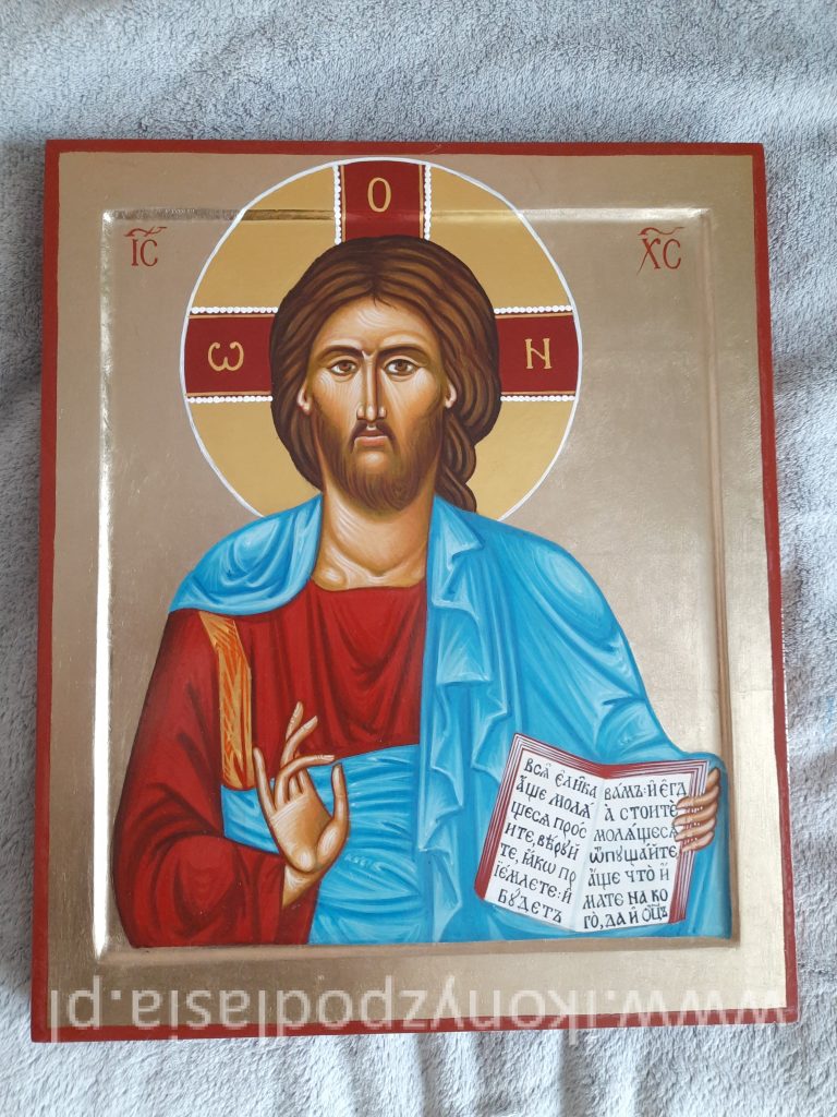 Jezus Chrystus z Ewangelią, dwa kolory złota